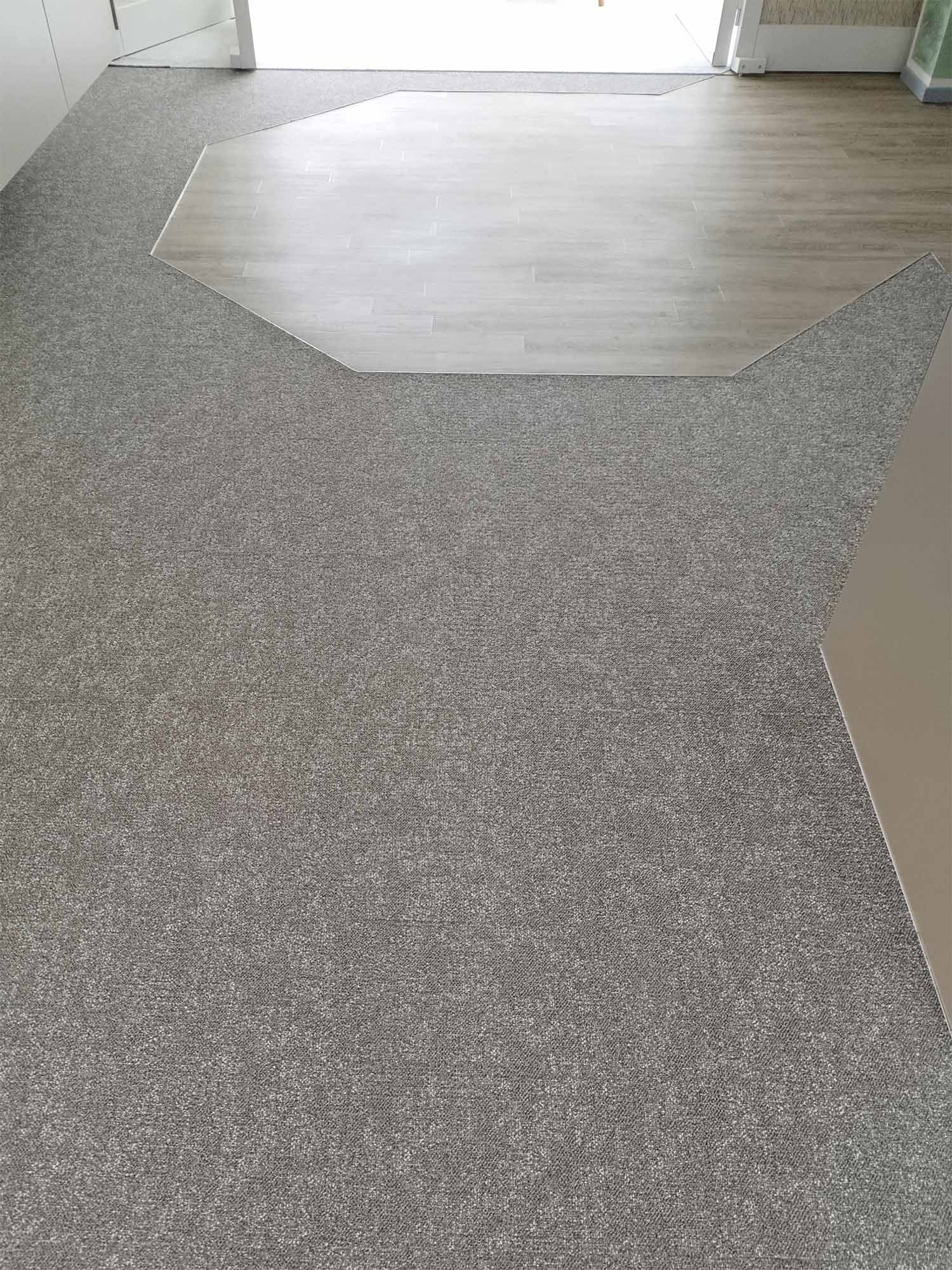 In diesem Projekt wurde der vorhandene Boden vollständig entfernt und durch hochwertige Teppichmodule ersetzt. Zum Einsatz kamen Module in einem dezenten, hellen Grauton, die dem Raum eine ruhige und moderne Ausstrahlung verleihen.